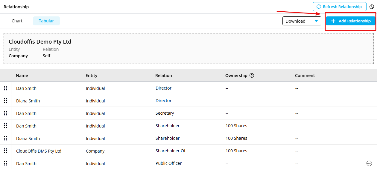This feature allows you to seamlessly integrate and manage relationships between clients and entities, ensuring that all relevant information is consistently reflected across both systems. Efficiently manage client relationships with Workpapers Sorted using the Add/View Relationship feature. View the Client Relationship with, Client Name, Entity Type (E), Relation (R), and Ownership (O). Add new relationships and send to Xero seamlessly with a pop-up dialogue. Manage entries with drag-and-drop functionality, ensuring data positioning. Here's a step-by-step guide to help you add relationships to your accounting software.