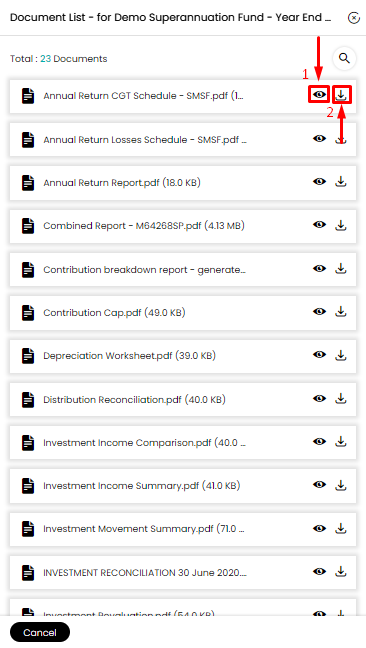 Step 5:- You will now be able to see a list of the documents uploaded to that specific fund.