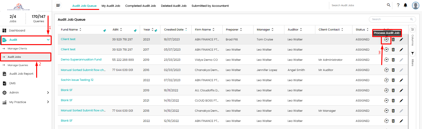 Step 2:- Click on Process Audit Jobs under the Action column.