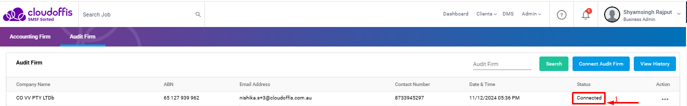 Step 6: Once they accept the connect request, the status would change from Pending to Connected and the firm will be connected successfully.