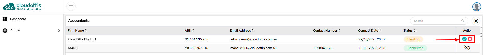 Step 7: Your Auditor can go to Admin > Connect and from there they can Accept or Deny the connect request.