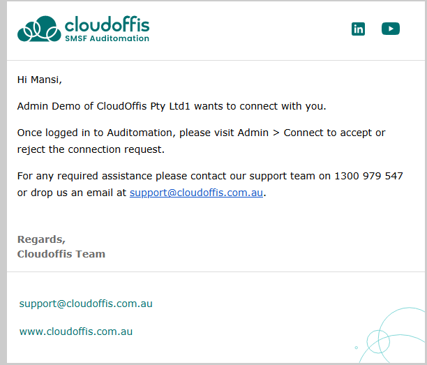 Step 4: Your auditor will receive a connect request e-mail.