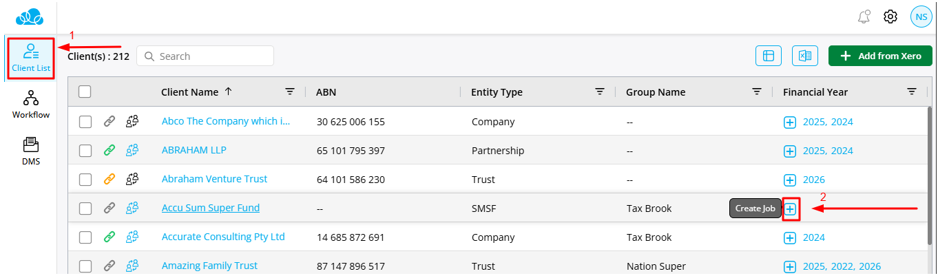 Note: You can only Create Workpaper File for a client if their Xero Ledger is connected.Step 4: Access the Job Dashboard to view and manage the newly created work paper file.