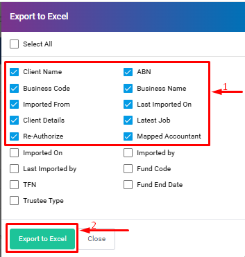 Step 3: Select the columns you would like to include when you export your Client List to Excel. Once done, click on Export to Excel.