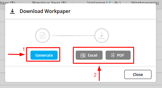 Step 2: Click on the Download Workpaper icon from the top taskbar.