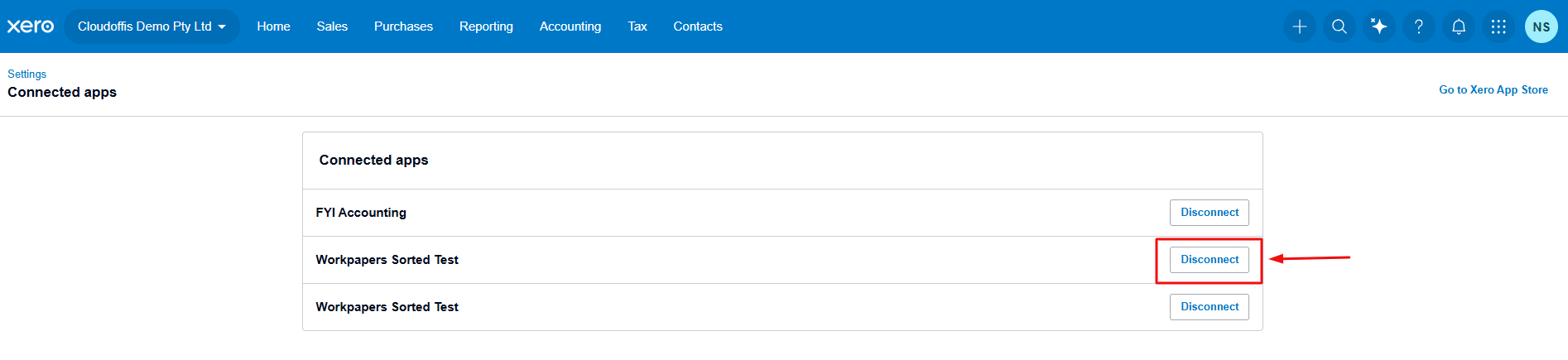 Step-2: Go to Connected Apps, find Workpapers in the Workpapers-Sorted, and click the Disconnect tab to remove the existing integration.