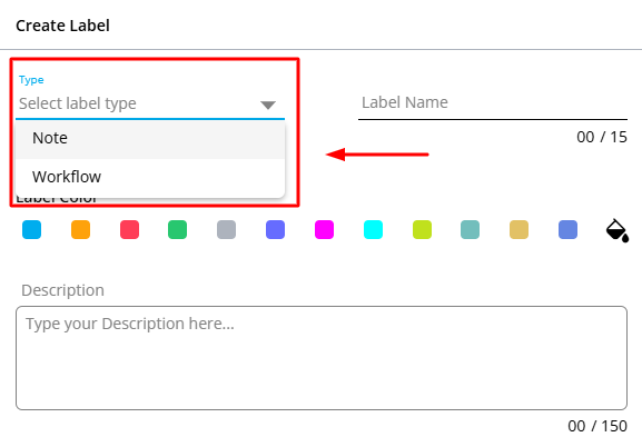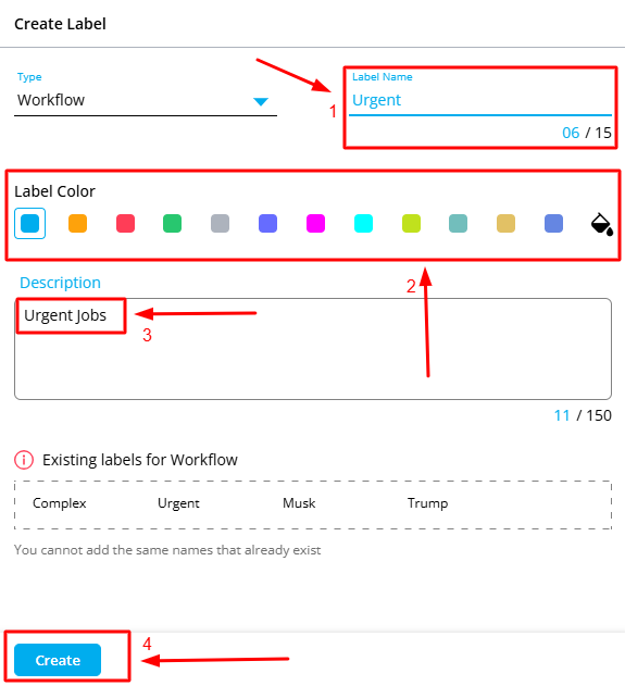 Step 4: Select the type as Workflow and enter Label Name & Description select Label Colour and hit create.