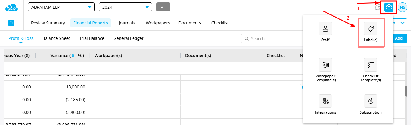 To add note type follow the steps mentioned below. These labels can be used while you add Review Notes to Financial Reports, Journals and General Ledger.
