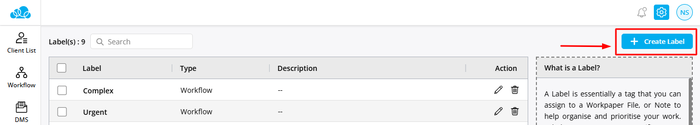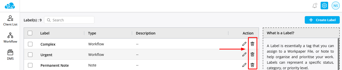 Step 6: Once the Label is created, it can not be edited but can be deleted by clicking on the Delete icon.