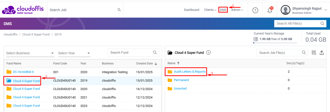 Step 1: All the Post Audit Letters and Reports shared by the auditors will be available under DMS > Audit Letters & Reports folder.