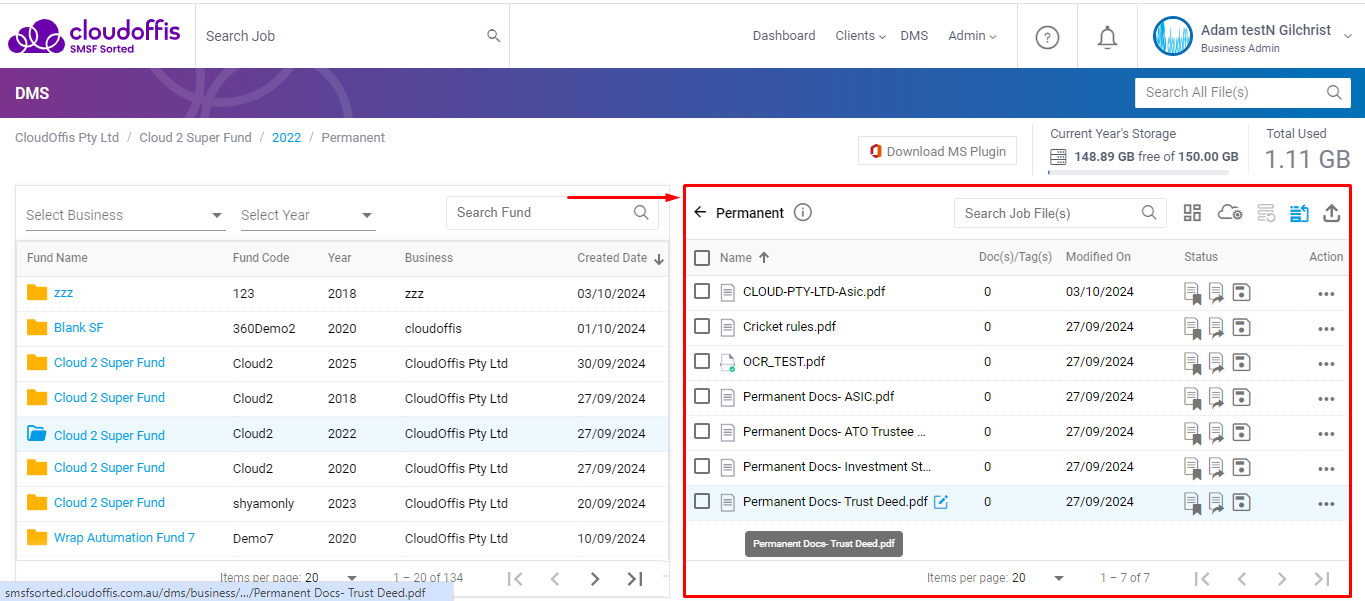 Introduction Some documents in SMSF (like the Trust Deed, Investment Strategy, Pension Establishment docs, Minutes, and Title Search) don’t change often. Instead of uploading them every year, you can move them to the Permanent folder in DMS. Once ...
