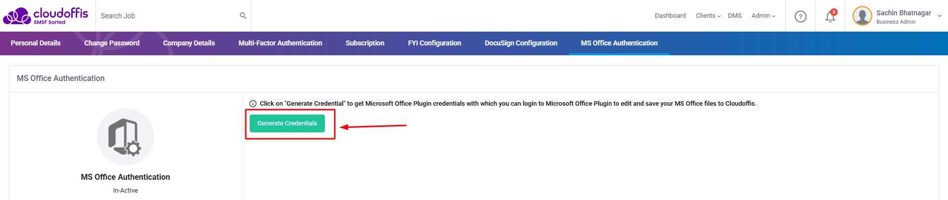 Note- Once the MS Office Authentication is active, and the login credentials are generated, the Download MS Office Plugin is automatically accessible through DMS on your portal.Step 3:- From the appearing pop-up select the bit version of your MS Office, it can be either 32 Bit or 64 Bit and then click on Download MS Plugin- 64/32 bit button.
