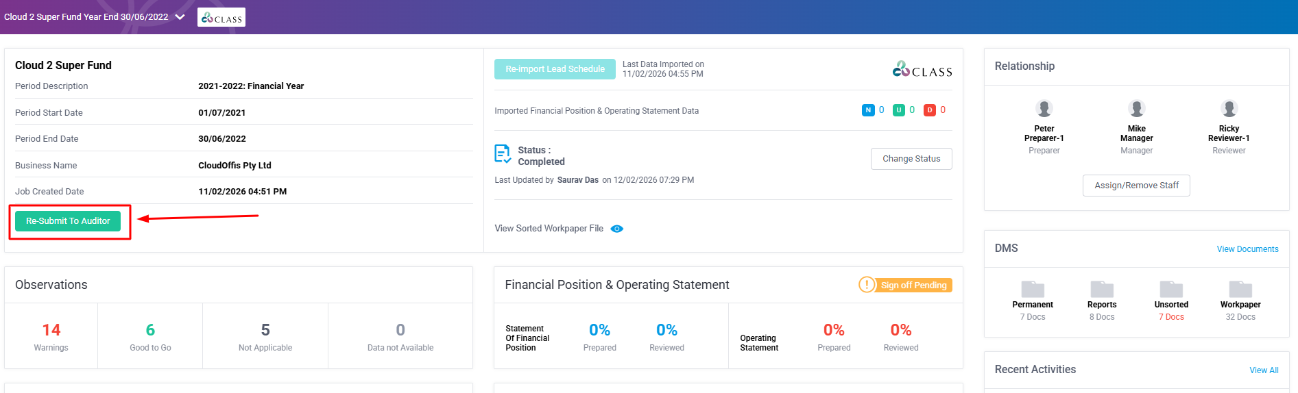 Once you have submitted a job and then made any changes, you will have to resubmit the job to the auditor to reflect the changes in the auditor's portal. Follow the steps mentioned below to resubmit the job.