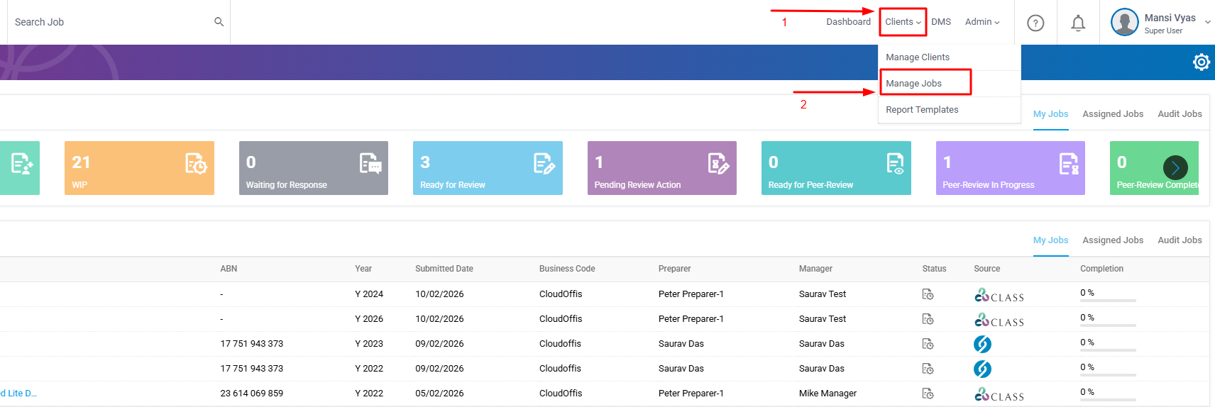 Step 1: Click on Clients > Manage Jobs > Completed Jobs.