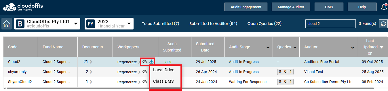 Step 1: Clicking on the Class DMS while downloading the workpaper file saves a copy of the workpaper file to Class DMS. Once saved in Class DMS; you can view it from Class Super > Fund > Dashboard > Fund documents in Class Super as mentioned below.