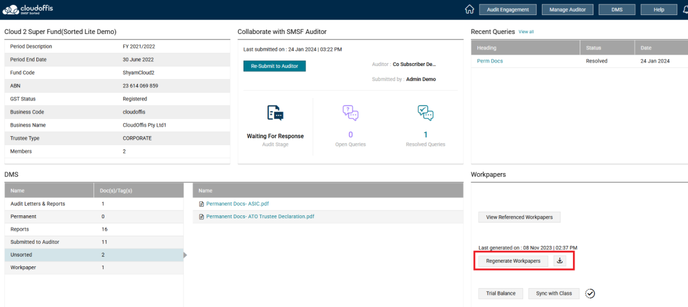 Note: Alternatively, you can go to the Sorted Lite Fund Dashboard and generate the workpaper by clicking on the Generate/ Regenerate workpapers.