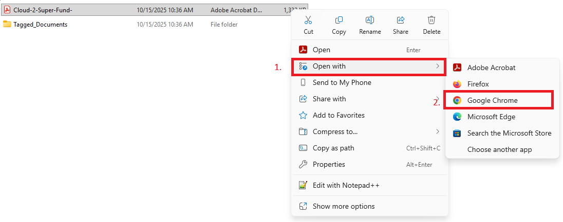 Note: The workpaper file can be best viewed when it is opened with Google Chrome. Right-click on the PDF file and open it with Google Chrome as shown below.