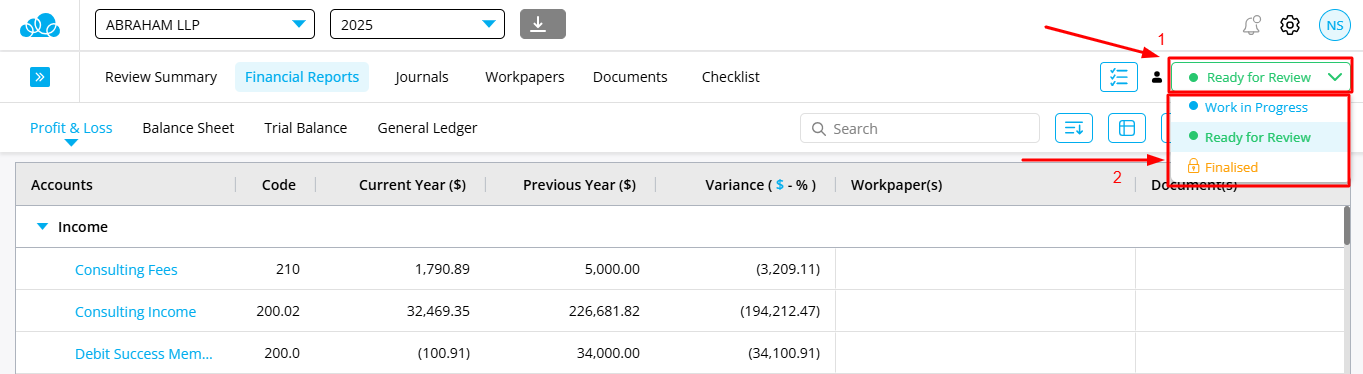 Note: For example, if the workpaper preparation is complete and ready for review, click on the Ready for Review checkbox.