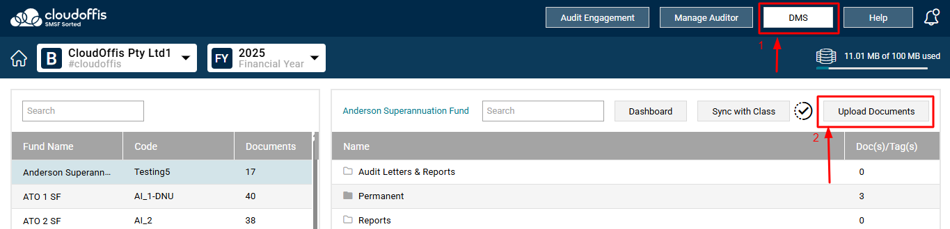 We have expanded access to the Document Management System (DMS) at the business level, making it easier to locate and tag documents. You can easily upload a document in SMSF Sorted Lite using either of these two options: