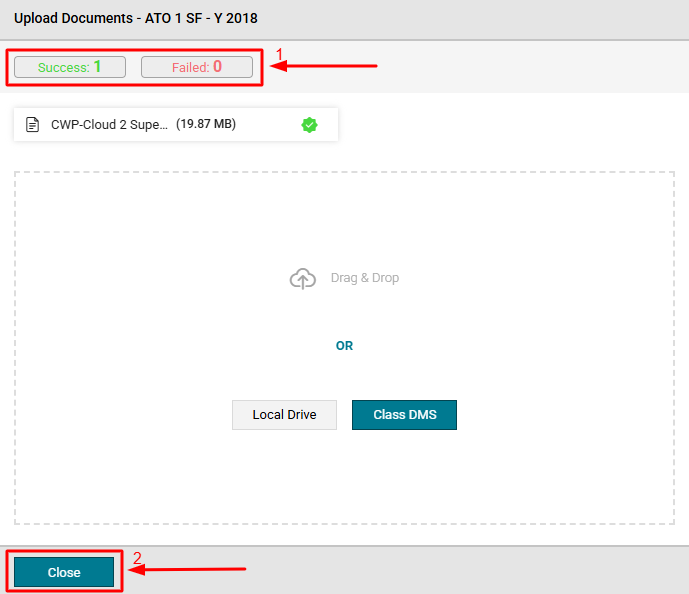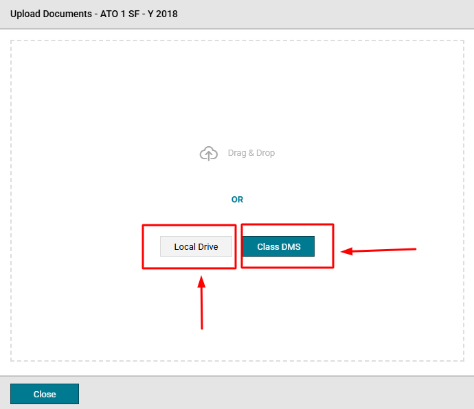 Step 2: On the appearing slider, you will have two options; either you can upload docs from Local Drive or you can upload from Class DMS.