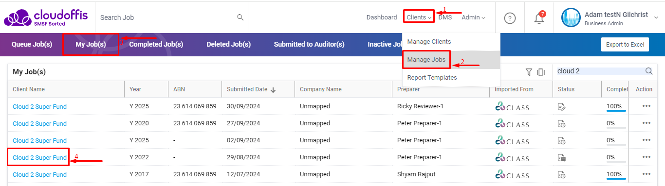 Step 1: Navigate to Clients > Manage Jobs > My Jobs.